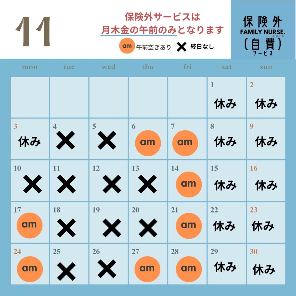 ※11月の休みは土日、祝日(11/3 (月)、11/24(月))となります。ご了承ください。